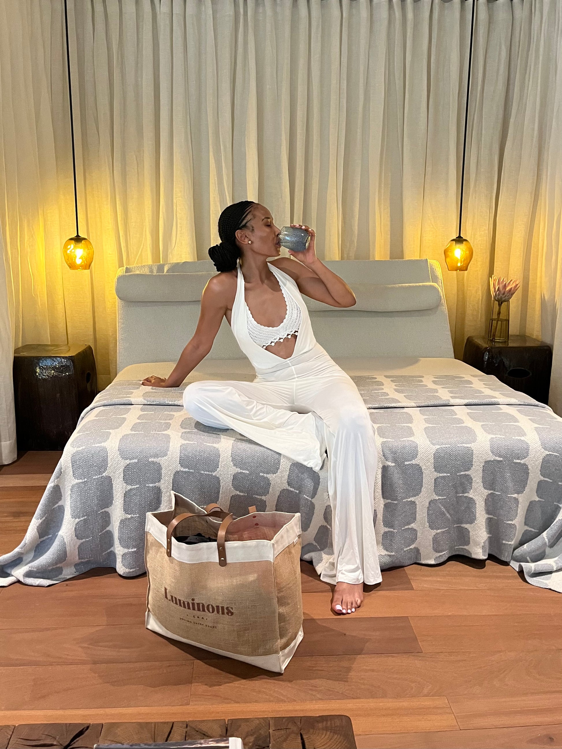 - 100% cotton canvas, laminated jute & leather